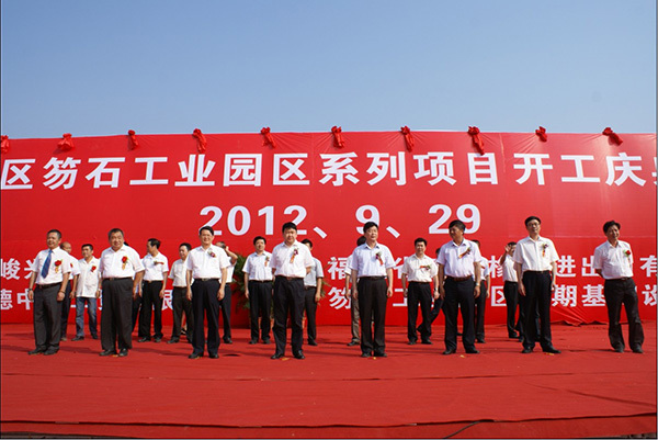 2012年9月29日,董事长带领公司的主要领导出席了福建省莆田市笏石工业园区系列项目开工仪式。该园区规划建设占地面积达6.3平方公里,重点发展服装、鞋业、木业制品、玩具、织造和水产品加工等环保型、劳动密集型的轻工业产业。